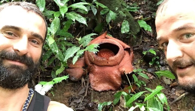 Després d’un trajecte mogut, la rafflesia i el guia ens esperen per fer una caminada per entremig de la selva d’unes dues hores. Un trekking autèntic per camins plens de fang i vegetació densa. Toca relliscar una estona, suar, caminar de pressa i sense descans perquè el guia va per feina i estar alerta de les sangoneres. El premi s’ho val ja que finalment trobem una raflessia bastant grossa, de tres pams de diàmetre, de color vermell amb taques blanques, de textura semblant als bolets i en estat de descomposició. Al seu costat hi ha tres capolls més en estat de creixement.