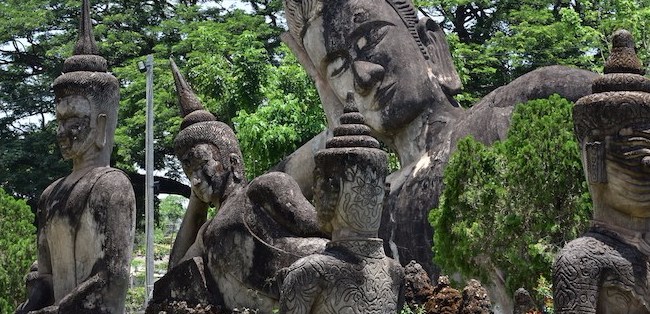 I què hem vist de moment a Vientiane? Tot i la intensa calor ens hem apropat als llocs més destacats com el Buddha Park, un parc molt original ple de múltiples estàtues dedicades a Buda; el Pha That Luang, on hi ha un pati amb una gran stupa daurada impressionant que és el símbol nacional més important del país o el Patuxay Monument, un arc de triomf preciós. També hem pogut veure l’stupa That Dam, els murals pintats del temple budista That Luang Tai o el Revolution Monument.