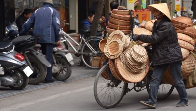 El dia següent el dediquem a explorar la zona anomenada Old Quarter, el centre històric de Hanoi. Toca fer cames i passejar pels carrers i carrerons estrets plens de vida. Les cases velles i desfargalades, són també estretes i altes, moltes amb vegetació abundant als balcons. A peu de carrer tot són botigues, garatges convertits en locals improvisats ja siguin de reparació de motocicletes, botigues, supermercats o senzills restaurants amb quatre tamborets i poca cosa més. Les voreres quasi no deixen espai pel vianant entre tant local, la gentada i les motos aparcades. És una autèntica passada el caos que hi ha a Hanoi amb les motos. És un espectacle per si mateix veure com a les cruïlles es creuen sense cap norma els centenars de motos (algunes carregades de manera increïble, altres amb tres persones a sobre, amb conductors menors d’edat o consultant el mòbil…), alguns cotxes, els vianants que volen creuar, les bicis amb cabina que porten més turistes, els venedors ambulats i els turistes que intenten creuar amb mirada atemorida. Aquí has de tirar endavant amb pas lent però decidit i la circulació ja s’apartarà. Com pot ser que no hi hagi accident? Els motociclistes fins i tot circulen per les voreres com si res si veuen que hi ha espai. Una bogeria que miraculosament funciona.
